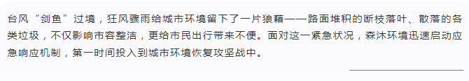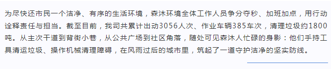 2017年7月創(chuàng)立于海南省三亞市(原名為三亞森沐清潔服務(wù)有限公司,于2020年12月更名為三亞森沐環(huán)境產(chǎn)業(yè)服務(wù)有限公司),是專業(yè)從事環(huán)衛(wèi)保潔和綠化養(yǎng)護(hù)的服務(wù)企業(yè),多年來我們致力于人居環(huán)境的改善和城市美化的提升,不斷的開拓創(chuàng)新,為城市環(huán)境可持續(xù)發(fā)展貢獻(xiàn)力量。